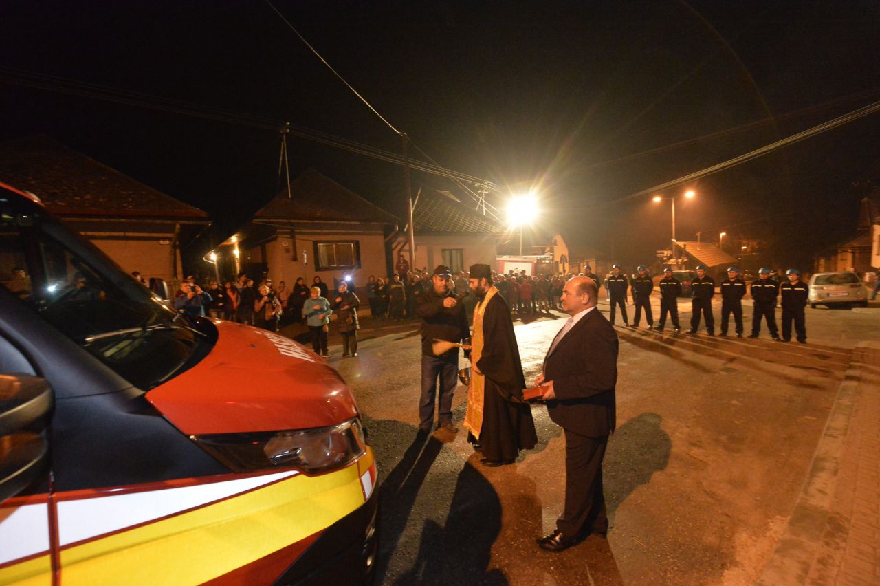 Pán minister Kaliňák nám priviezol nové hasičské auto.